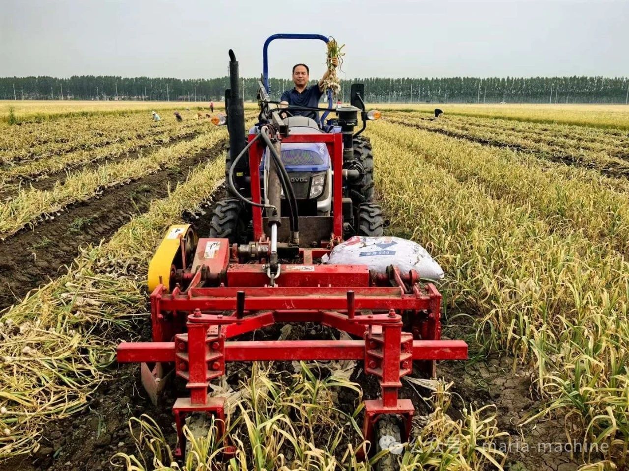 玛丽亚大蒜联合收获机工作中......