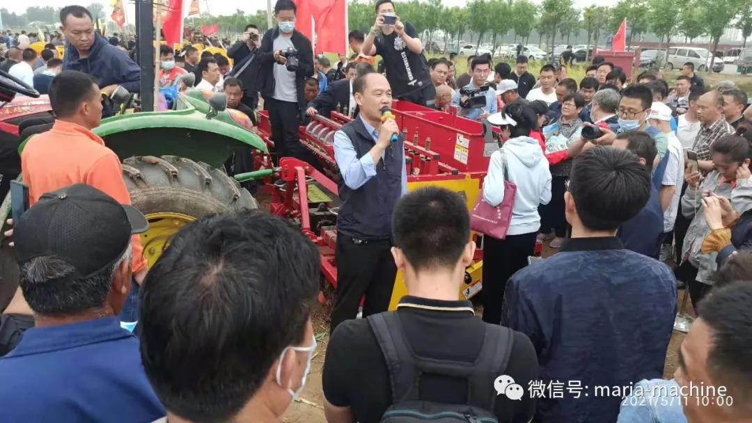领导讲话后,现场会正式开始,大家在山东省农业机械技术推广站副站长陈传强同志的带领下进行现场观摩,参会企业也进行了现场作业演示与产品推介。