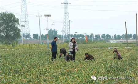 现场会期间,毛洪会长在玛丽亚机械董事长辛丽的陪同下专程到会场旁边的蒜田查看了人工挖蒜的场景。毛会长亲切地与农民朋友交谈。看到蒜农们跪着趴着挖蒜和跟他们交流,毛会长更深切体会到了中国蒜农劳动的艰辛和他们从心底对大蒜机械化的渴望。