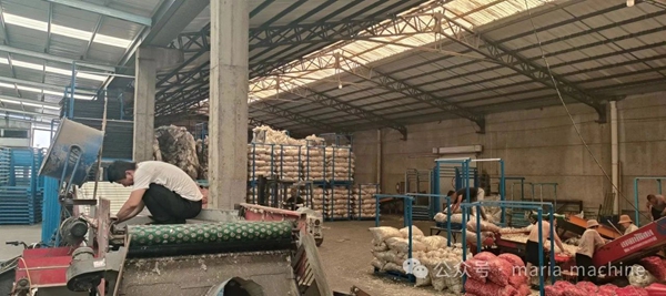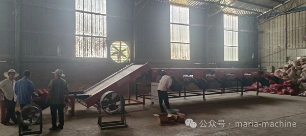 大蒜入库与加工旺季,玛丽亚的同事们加班加点对客户的大蒜分选机进行维护保养。