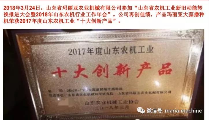 今天,玛丽亚公司是在推翻几千年的传统观念和思维,在做一件可谓前无古人,后无来者的意义重大而有福报的事。我们和山东省农科院联合研发的大蒜正芽播种机,实现了与人工相竞比的正芽播种,填补了国际空白,获得了多项荣誉,目前最直接的实惠是——农民购机可以享受国家补贴了!