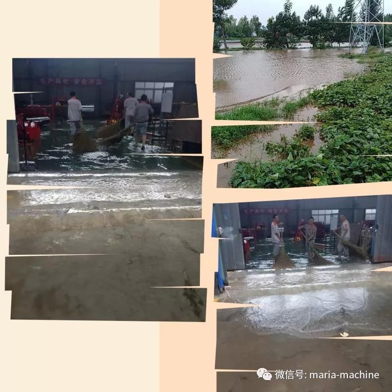 玛丽亚机械的员工们克服大雨带来的不便,及时排水,安全生产,有条不紊的为客户赶做订单,及时发货,为客户安装调试,保证客户的及时使用。
