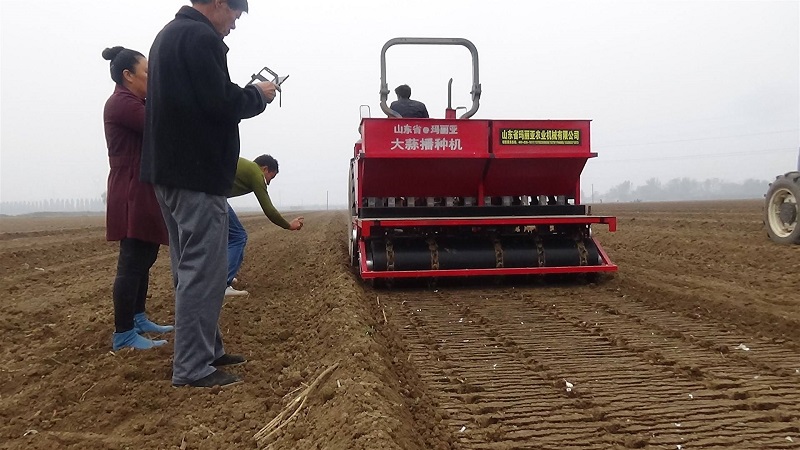 在我国大蒜种植还是以手工栽植为主导,劳动效率大,生产效率低,每一个成熟劳动力每天仅能播种133.3m2,每播种1亩的大蒜要付费150元,成本费很高,而且在农忙季节经常出现无雇工可用的问题。